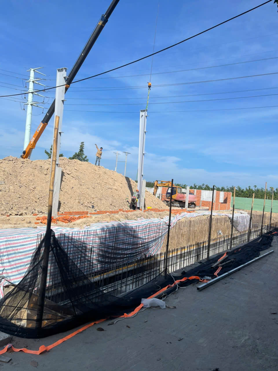 Kết cấu khung thép tiền chế kết hợp móng bê tông cốt thép giúp công trình có độ bền cao, khả năng chịu lực tốt và rút ngắn thời gian thi công so với phương pháp truyền thống.